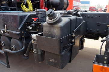 第三,車用尿素罐在哪?國四車跟國三車的區(qū)別主要是多了一個小型的儲液器--尿素管,一般都安裝在車架側(cè)面。