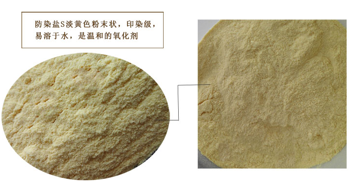 防染鹽k是微黃色閃光粉末狀,防染鹽S是黃色或者白色粉末狀。