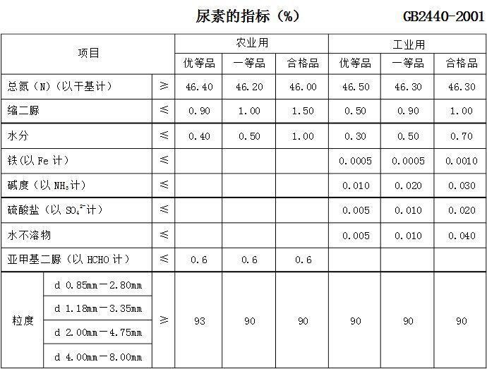 根據(jù)國家有關(guān)標(biāo)準(zhǔn),工業(yè)尿素與農(nóng)用尿素相比,除對鐵含量、堿度、硫酸鹽、水不容物等有一定要求外,其余如氮、縮二脲、水分的含量等主要質(zhì)量指標(biāo)并無太大差別,一般大中型企業(yè)的尿素產(chǎn)品均能滿足工業(yè)尿素的質(zhì)量要求。國家有關(guān)政策也未對工業(yè)尿素與農(nóng)用尿素有嚴(yán)格的區(qū)分和界定。